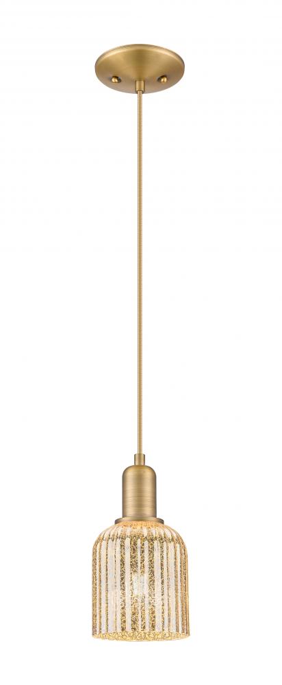 Bridal Veil - 1 Light - 6 inch - Brushed Brass - Mercury Deco Swirl Shade - Cord hung - Mini Pendant