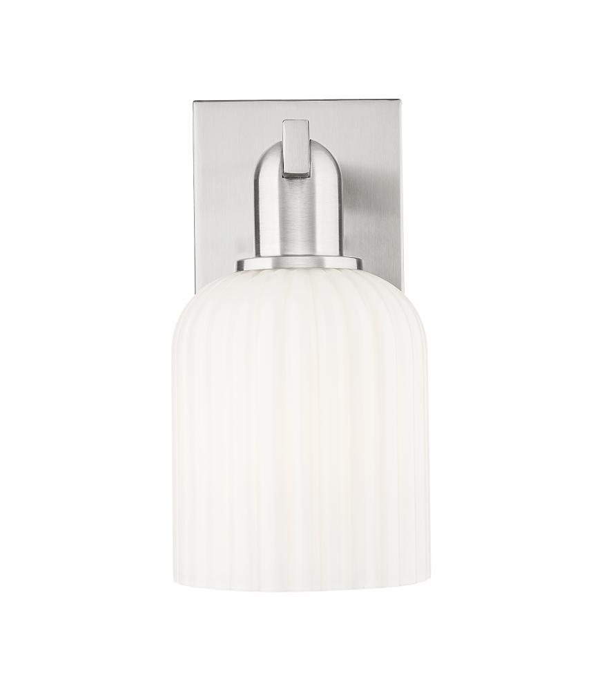 Bridal Veil - 1 Light - 6 inch - Brushed Satin Nickel - Gloss White Deco Swirl Shade - Sconce