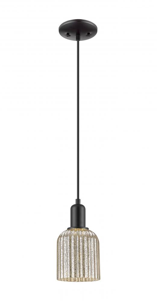 Bridal Veil - 1 Light - 6 inch - Matte Black - Mercury Deco Swirl Shade - Cord hung - Mini Pendant