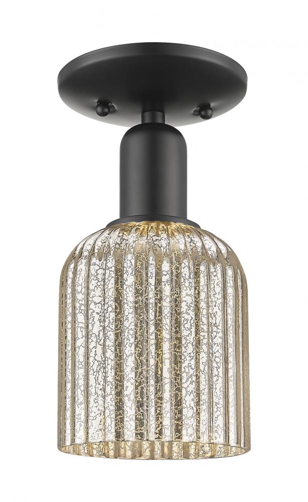 Bridal Veil - 1 Light - 6 inch - Matte Black - Mercury Deco Swirl Shade - Semi-Flush Mount
