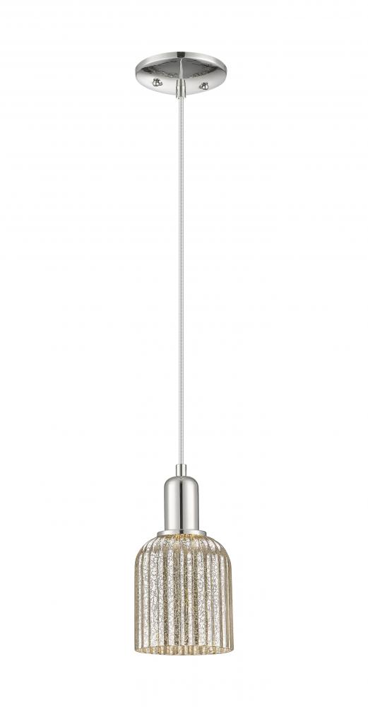 Bridal Veil - 1 Light - 6 inch - Polished Nickel - Mercury Deco Swirl Shade - Cord hung - Mini Pendant