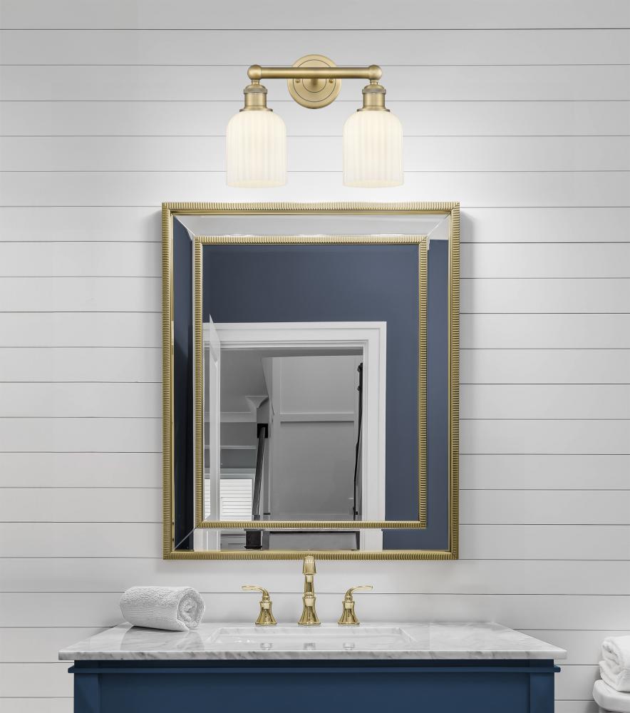 Bridal Veil - 2 Light - 14 inch - Brushed Brass - Gloss White Shade - Bath Vanity Light