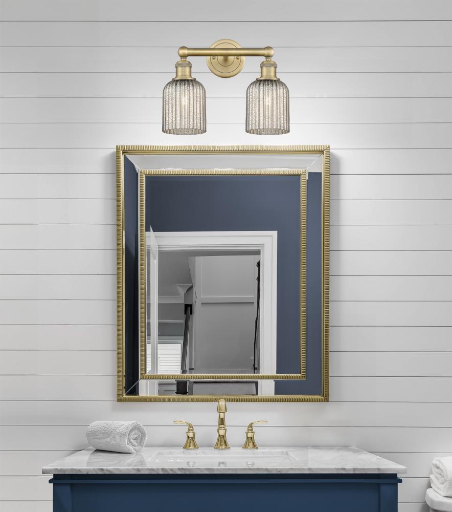 Bridal Veil - 2 Light - 14 inch - Brushed Brass - Mercury Shade - Bath Vanity Light