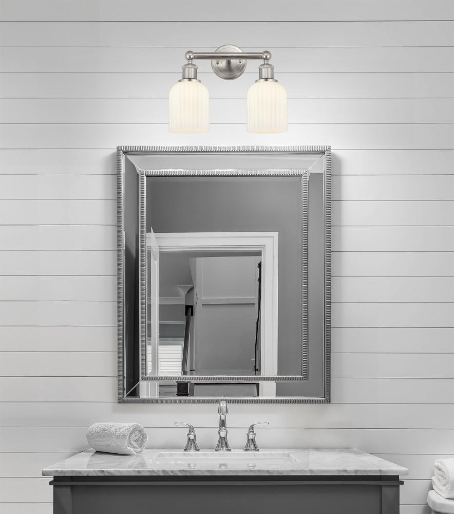 Bridal Veil - 2 Light - 14 inch - Brushed Satin Nickel - Gloss White Shade - Bath Vanity Light