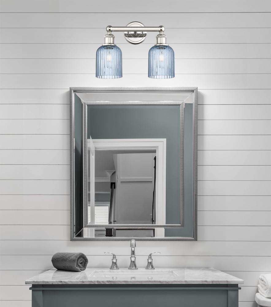 Bridal Veil - 2 Light - 14 inch - Polished Nickel - Princess Blue Shade - Bath Vanity Light