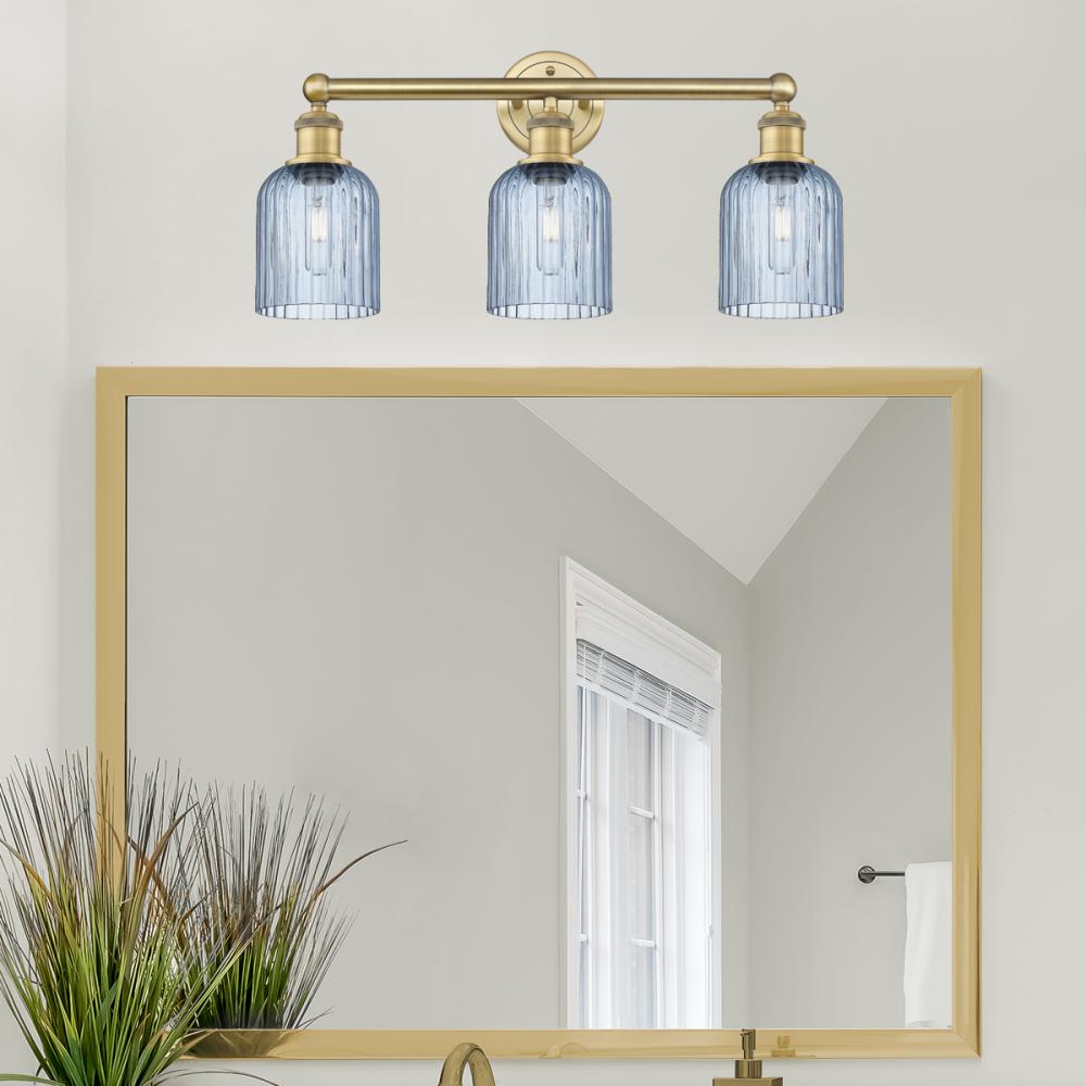 Bridal Veil - 3 Light - 23 inch - Brushed Brass - Princess Blue Shade - Bath Vanity Light
