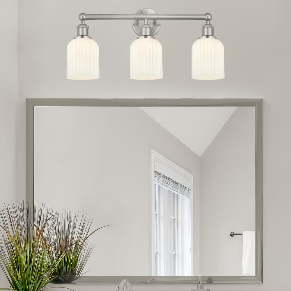 Bridal Veil - 3 Light - 23 inch - Brushed Satin Nickel - Gloss White Shade - Bath Vanity Light