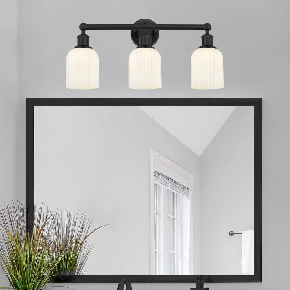 Bridal Veil - 3 Light - 23 inch - Matte Black - Gloss White Shade - Bath Vanity Light