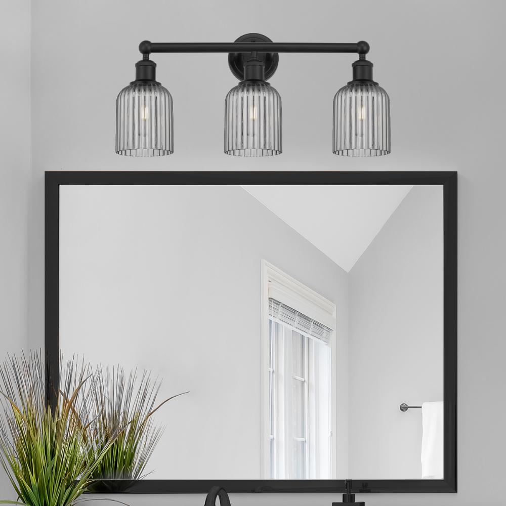 Bridal Veil - 3 Light - 23 inch - Matte Black - Light Smoke Shade - Bath Vanity Light