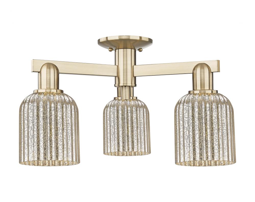Bridal Veil - 3 Light - 6 inch - Champagne Bronze - Mercury Deco Swirl Shade - Semi-Flush Mount