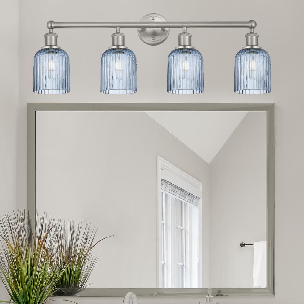 Bridal Veil - 4 Light - 32 inch - Brushed Satin Nickel - Princess Blue Shade - Bath Vanity Light