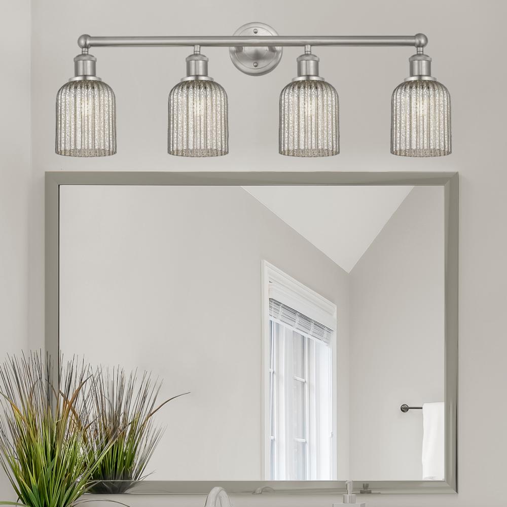 Bridal Veil - 4 Light - 32 inch - Brushed Satin Nickel - Mercury Shade - Bath Vanity Light