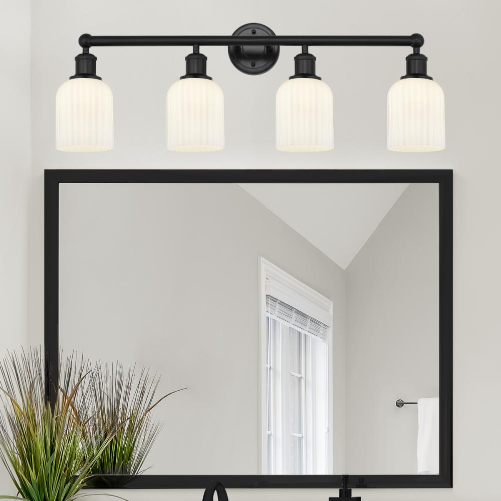 Bridal Veil - 4 Light - 32 inch - Matte Black - Gloss White Shade - Bath Vanity Light