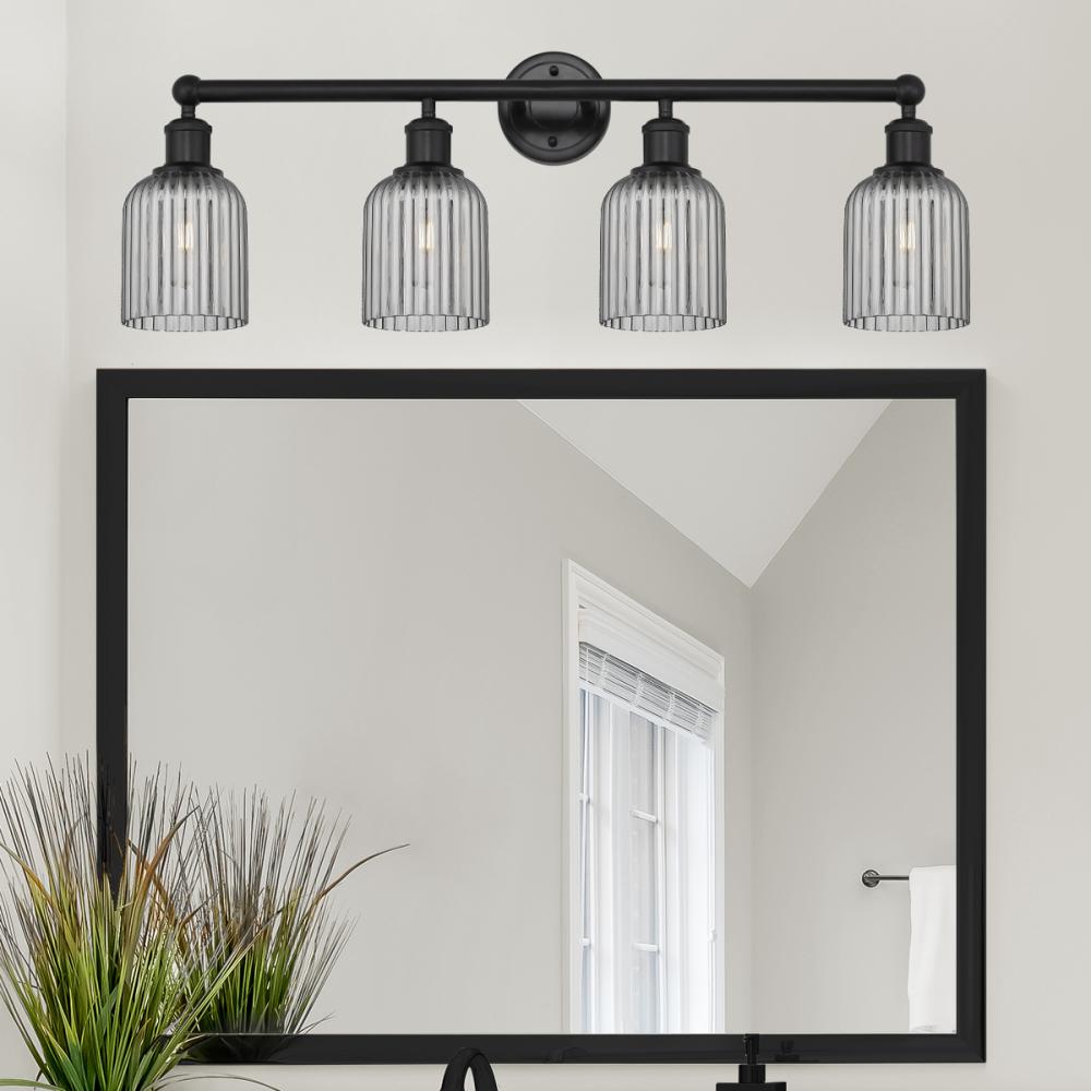 Bridal Veil - 4 Light - 32 inch - Matte Black - Light Smoke Shade - Bath Vanity Light