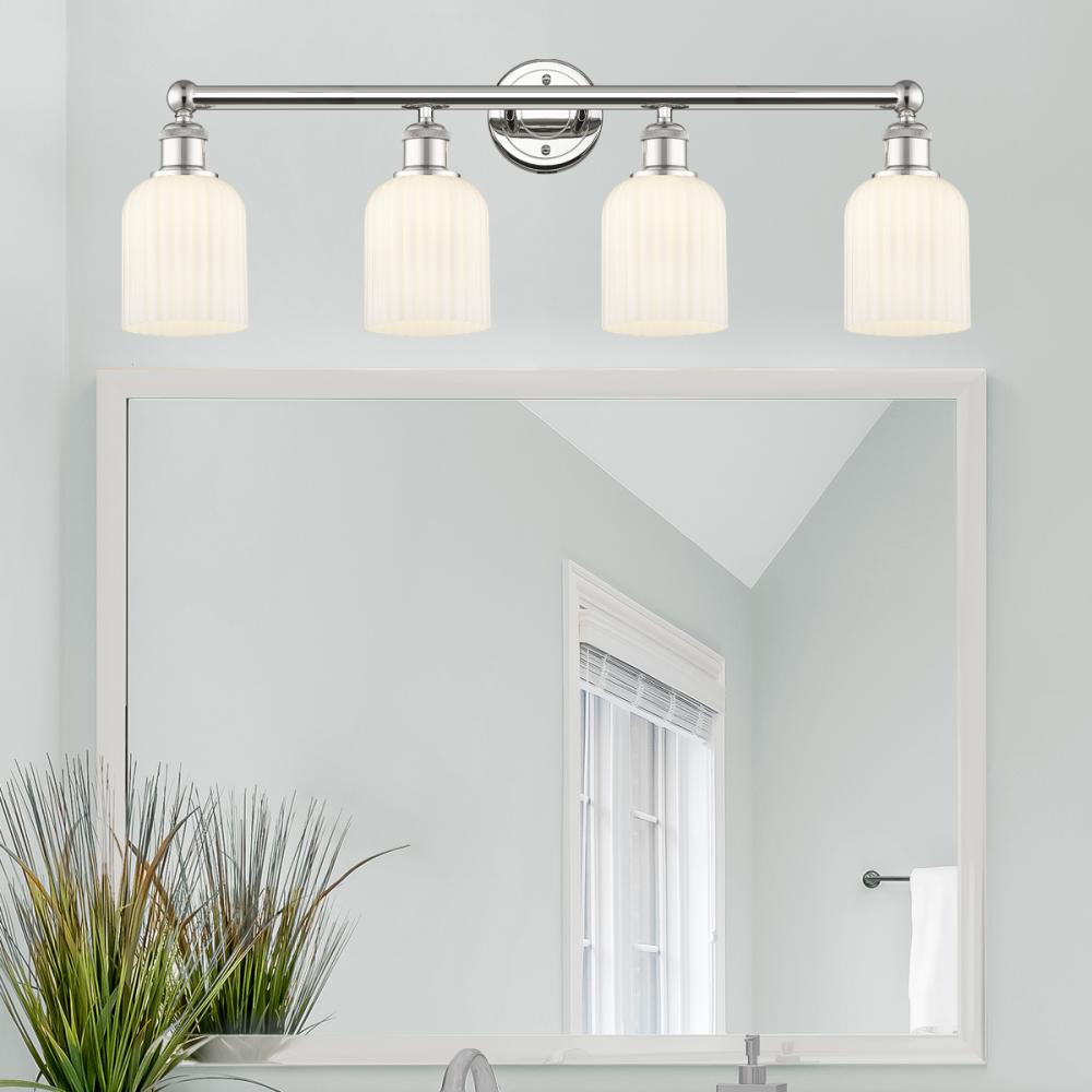 Bridal Veil - 4 Light - 32 inch - Polished Nickel - Gloss White Shade - Bath Vanity Light
