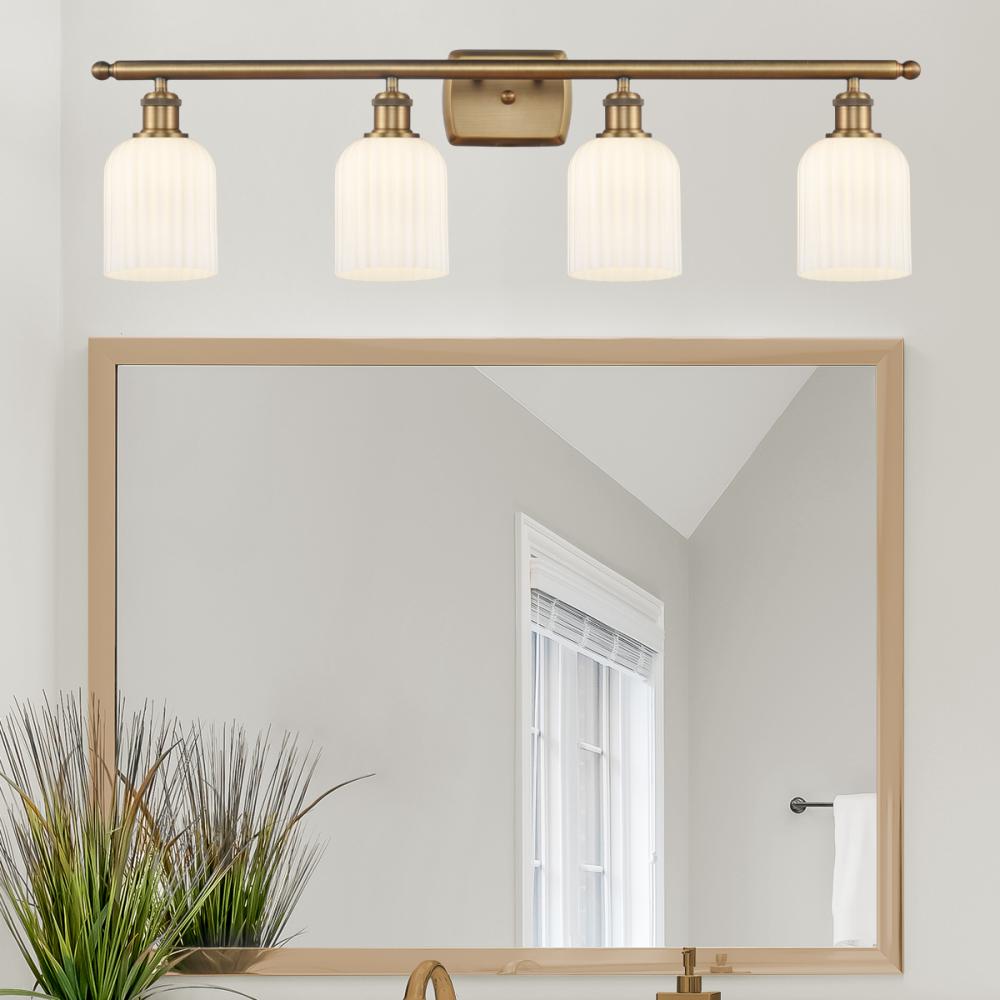 Bridal Veil - 4 Light - 35 inch - Brushed Brass - Gloss White Shade - Bath Vanity Light