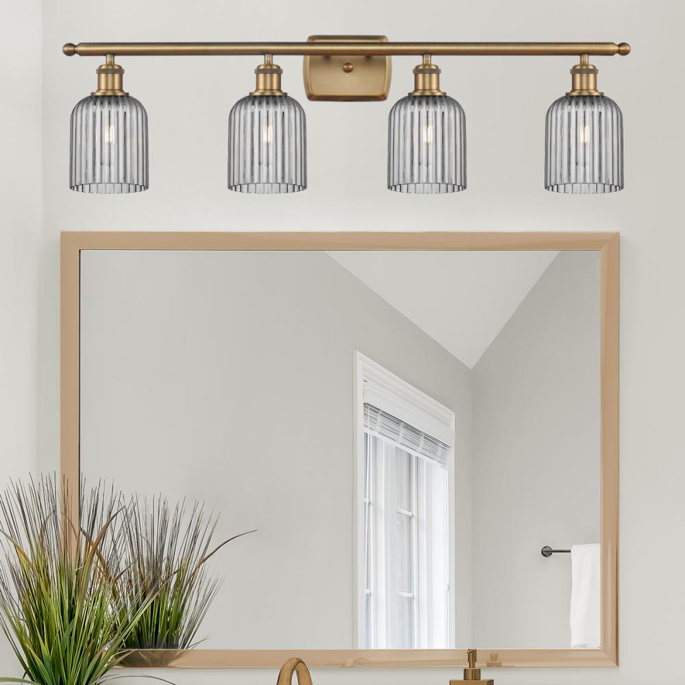 Bridal Veil - 4 Light - 35 inch - Brushed Brass - Light Smoke Shade - Bath Vanity Light