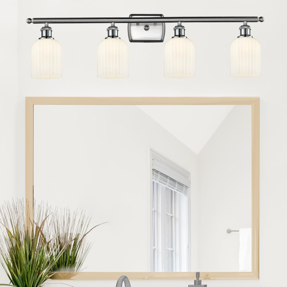 Bridal Veil - 4 Light - 35 inch - Brushed Satin Nickel - Gloss White Shade - Bath Vanity Light