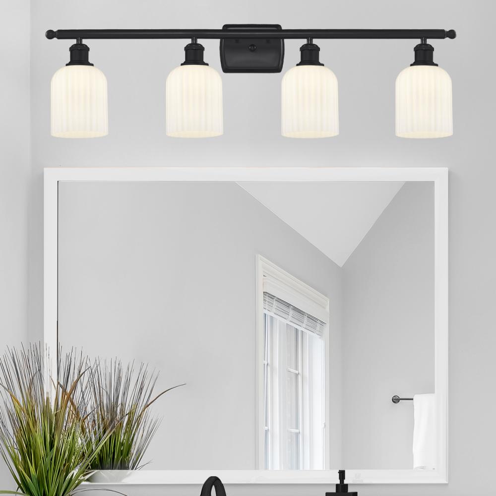 Bridal Veil - 4 Light - 35 inch - Matte Black - Gloss White Shade - Bath Vanity Light