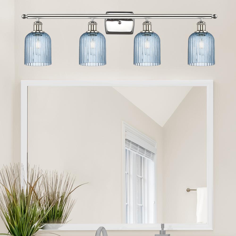 Bridal Veil - 4 Light - 35 inch - Polished Nickel - Princess Blue Shade - Bath Vanity Light