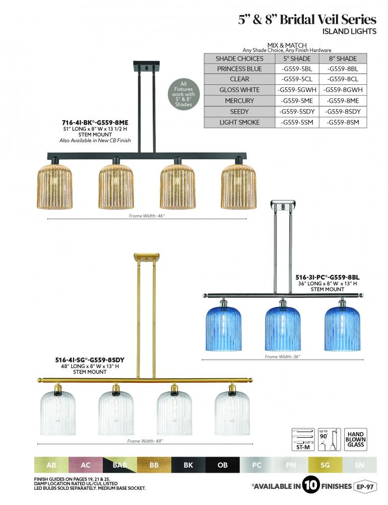 Bridal Veil - 4 Light - 48 inch - Antique Brass - Clear Bridal Veil Shade - Stem hung - Island Light