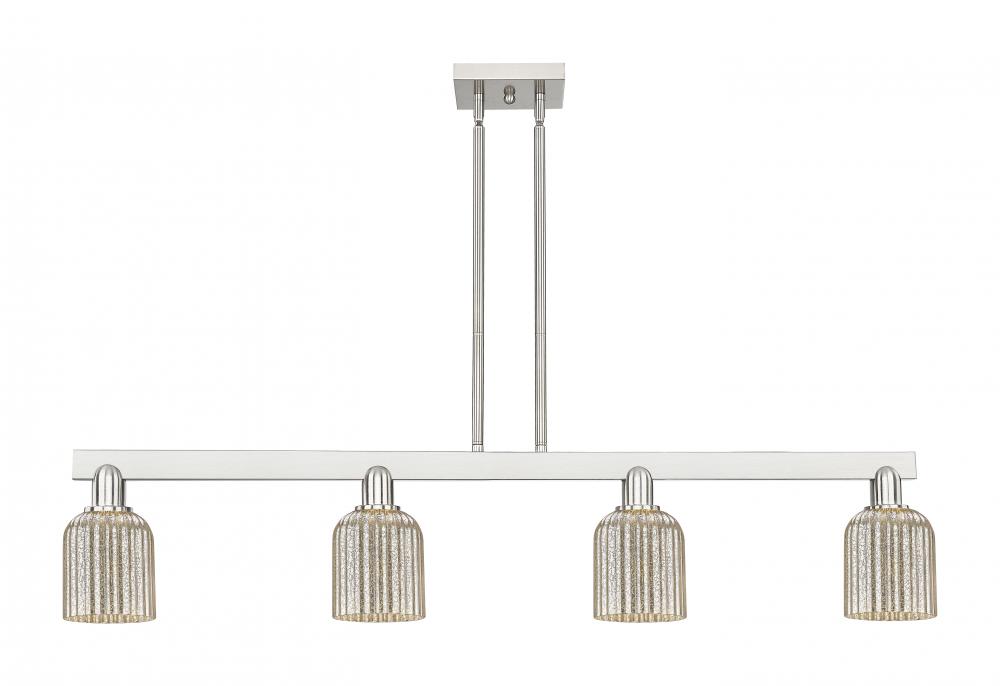 Bridal Veil - 4 Light - 48 inch - Brushed Satin Nickel - Mercury Deco Swirl Shade - Stem hung - Island Light