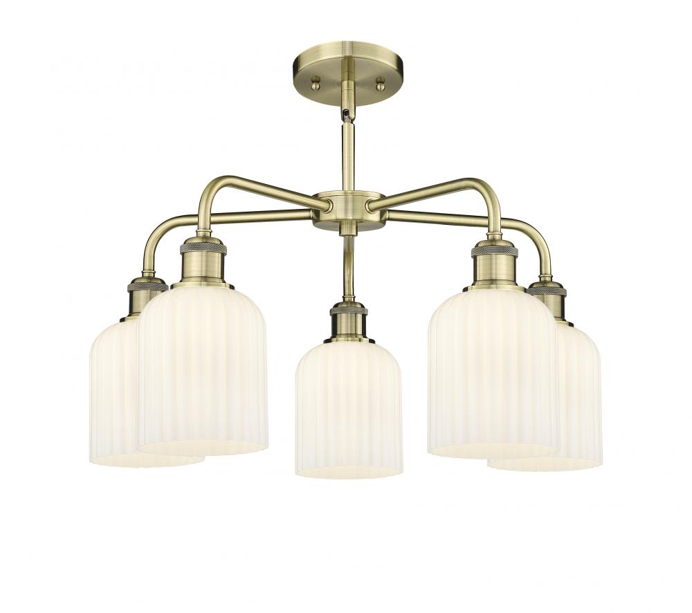 Bridal Veil - 5 Light - 23 inch - Antique Brass - Gloss White Shade - Chandelier