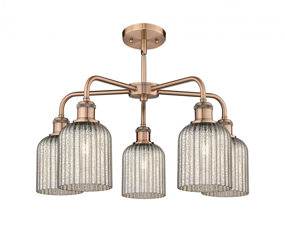Bridal Veil - 5 Light - 23 inch - Antique Copper - Mercury Shade - Chandelier