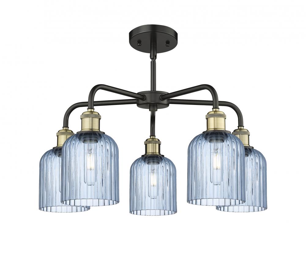 Bridal Veil - 5 Light - 23 inch - Black Antique Brass - Princess Blue Shade - Chandelier