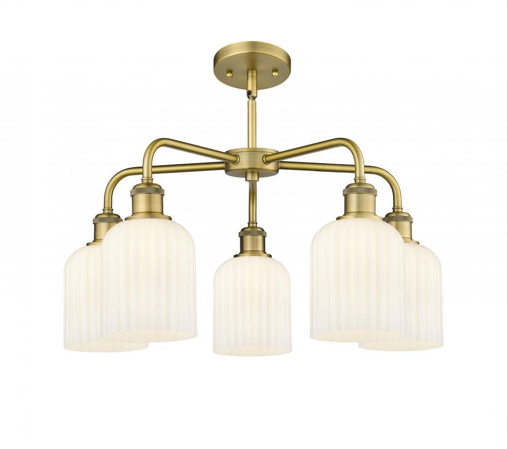 Bridal Veil - 5 Light - 23 inch - Brushed Brass - Gloss White Shade - Chandelier