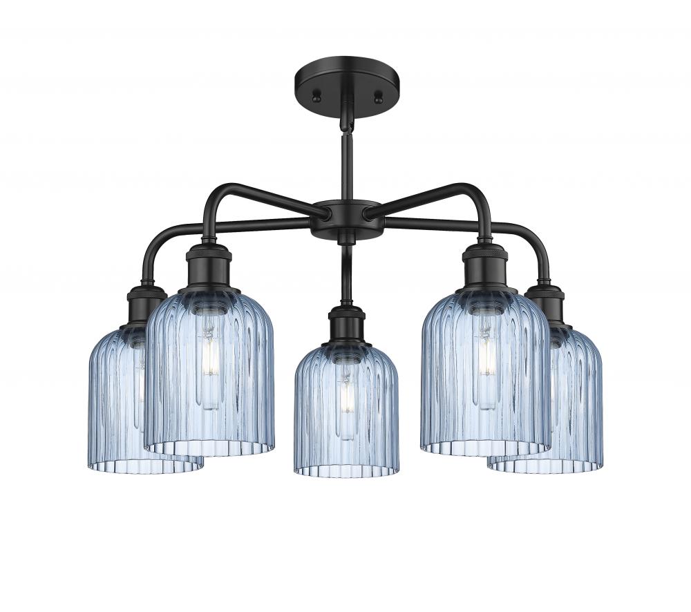 Bridal Veil - 5 Light - 23 inch - Matte Black - Princess Blue Shade - Chandelier
