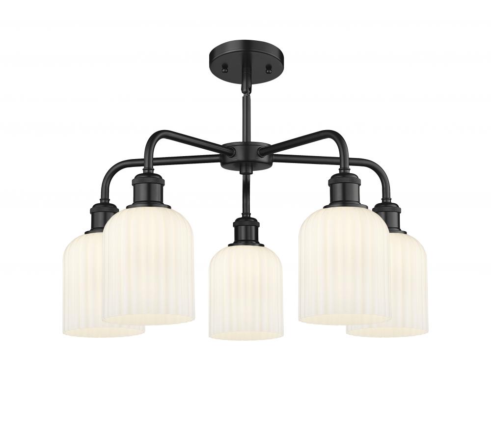 Bridal Veil - 5 Light - 23 inch - Matte Black - Gloss White Shade - Chandelier