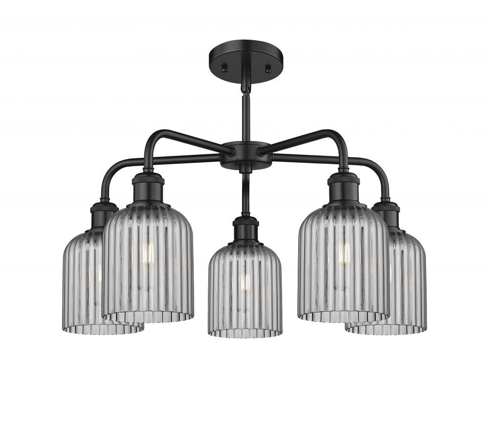 Bridal Veil - 5 Light - 23 inch - Matte Black - Light Smoke Shade - Chandelier