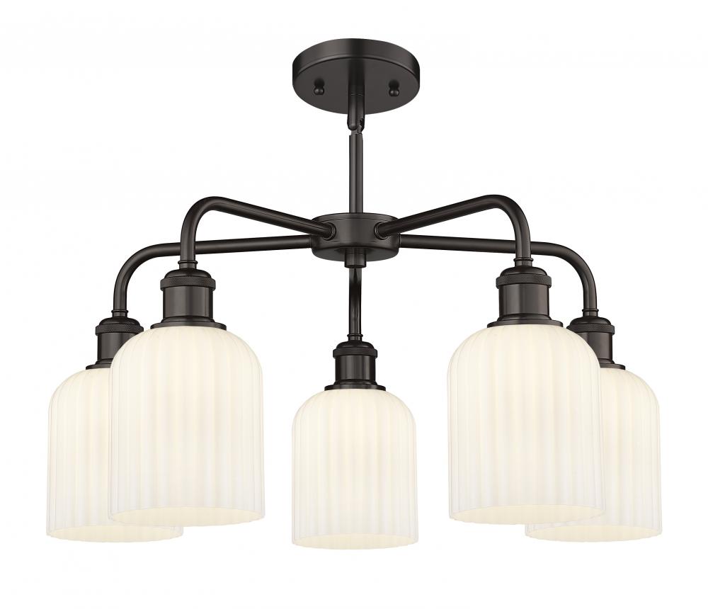 Bridal Veil - 5 Light - 23 inch - Oil Rubbed Bronze - Gloss White Shade - Chandelier
