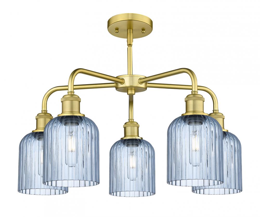 Bridal Veil - 5 Light - 23 inch - Satin Gold - Princess Blue Shade - Chandelier