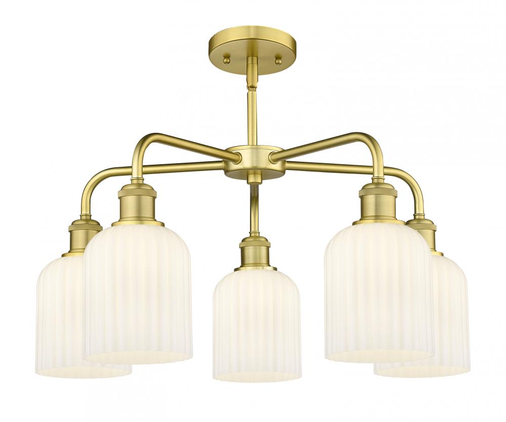 Bridal Veil - 5 Light - 23 inch - Satin Gold - Gloss White Shade - Chandelier