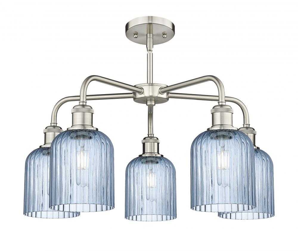 Bridal Veil - 5 Light - 23 inch - Satin Nickel - Princess Blue Shade - Chandelier