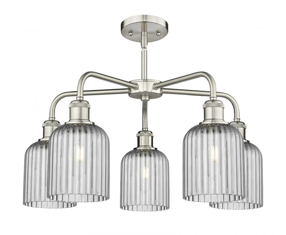 Bridal Veil - 5 Light - 23 inch - Satin Nickel - Light Smoke Shade - Chandelier