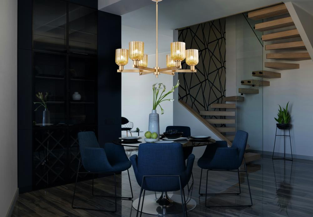 Bridal Veil - 6 Light - 24 inch - Champagne Bronze - Mercury Deco Swirl Shade - Chandelier