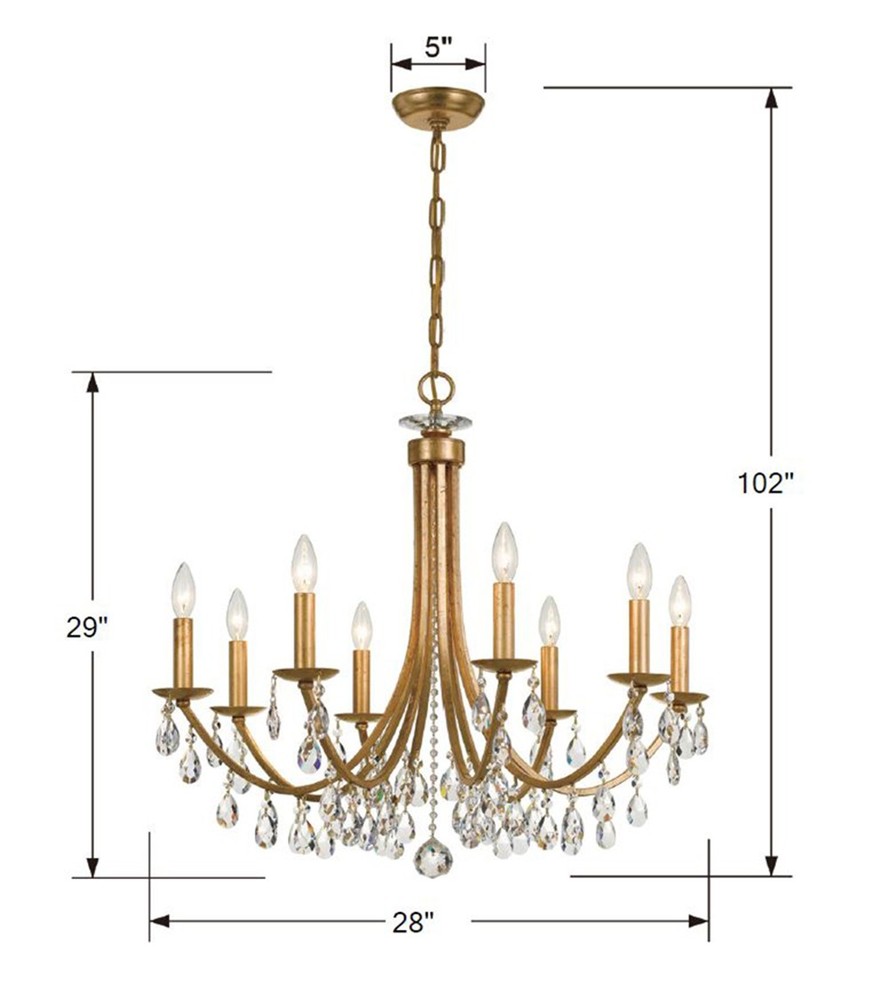 Bridgehampton 8 Light Swarovski Strass Crystal Antique Gold Chandelier