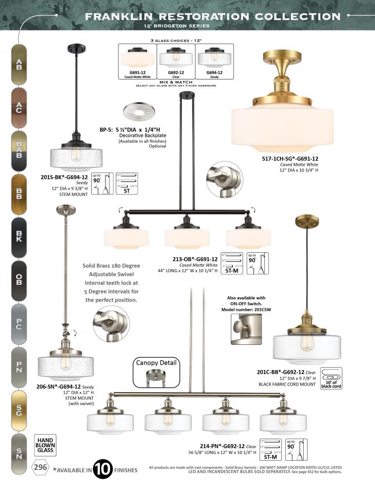 The Franklin Restoration collection is comprised of heavy cast components that give the fixture a heavy Industrial look and feel. We offer the fixture in 10 finishes with a Bare Bulb look or with over 100 possible metal and glass shade options that can cha