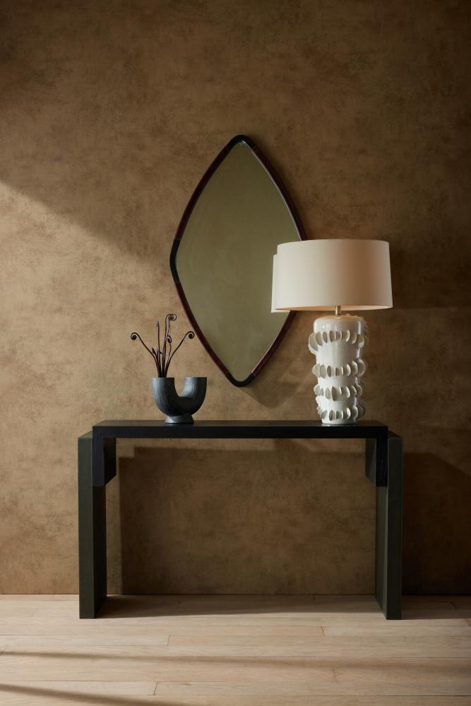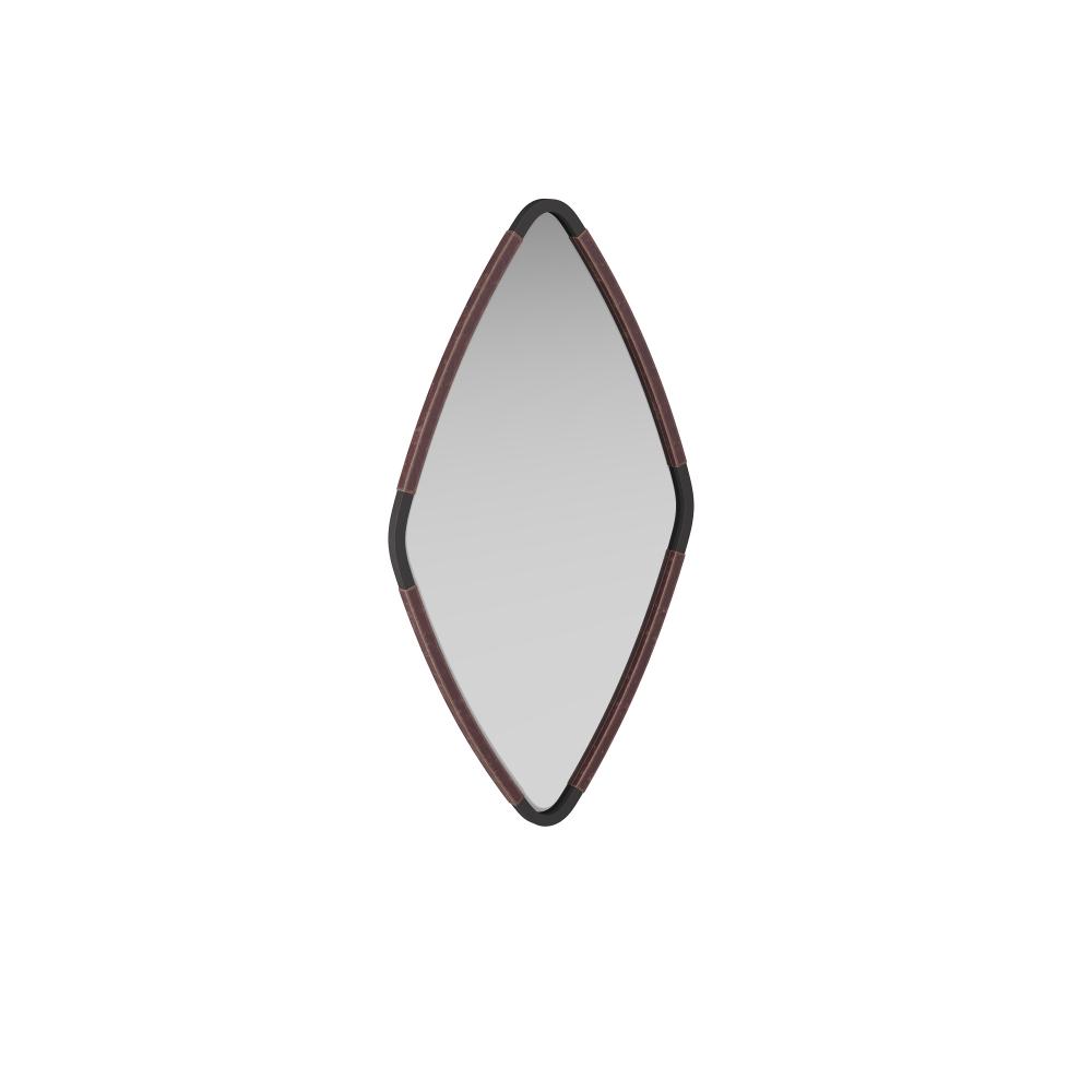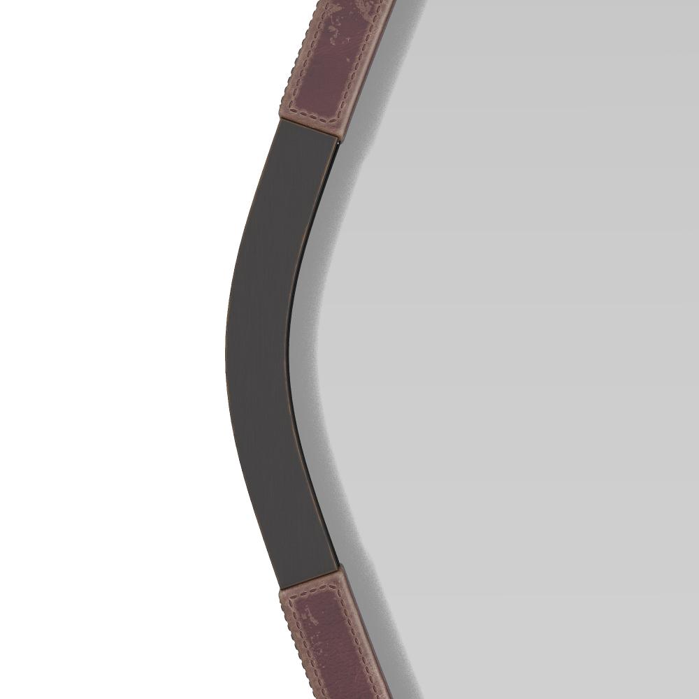 This jewelry-inspired style is accented in shades of deepest merlot and topstitched for visual interest. Wrapped in oxblood leather, it is accented with cuffs of bronze-finished brass at each corner. Designed to be hung both vertically and horizontally, it is secured with cleat hardware. Finish will vary.