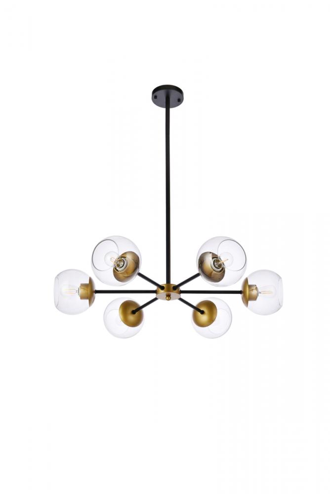 Briggs 30 inch pendant in black and brass with clear shade