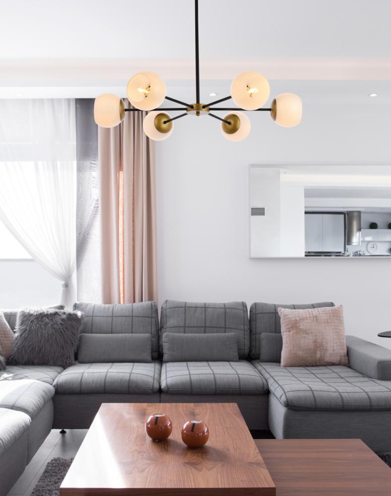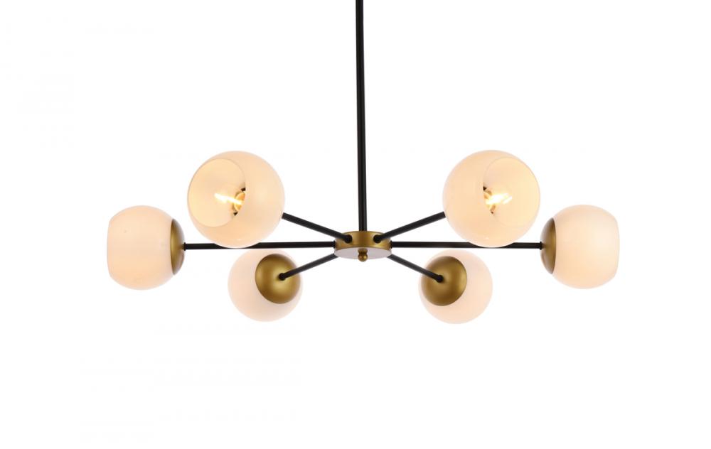 The Briggs collection pendant illuminates in all directions, creating a wonderful display of artistic style and brilliance. If your home was a modern art exhibit, then you have curated the best possible piece of art. With six lights pointing in different directions, and the painted finish gleaming in modern beauty, you won't have to worry about being "up to date" because you already are (light bulbs not included). This modern light fixture is adorned with spherical glass globes. The hardware finish brings an element of sophistication that can accentuate all styles of interior design.