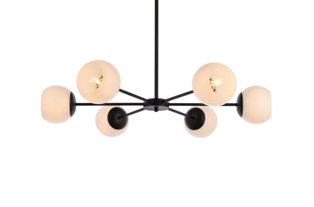 The Briggs collection pendant illuminates in all directions, creating a wonderful display of artistic style and brilliance. If your home was a modern art exhibit, then you have curated the best possible piece of art. With six lights pointing in different directions, and the painted finish gleaming in modern beauty, you won't have to worry about being "up to date" because you already are (light bulbs not included). This modern light fixture is adorned with spherical glass globes. The hardware finish brings an element of sophistication that can accentuate all styles of interior design.