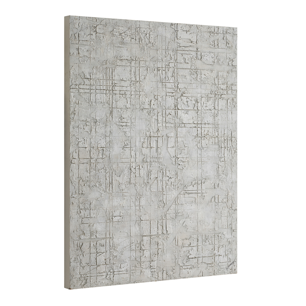 Supersize the art in your design project for an impact that demands attention. Measuring 48” x 36”, Brigitta is a perfect wall art choice to turn any blank wall into an instant focal point. Hand painted in creamy off-white hues, this stunning piece lets heavy texture take center stage. A convenient D-ring system enables vertical or horizontal hanging so whether displaying it over a long piece of furniture like a sofa, credenza or bed or opting to feature it upright on a tall wall, the choice is yours. Bring it into any modern or transitional home or office for an impressive style update.
