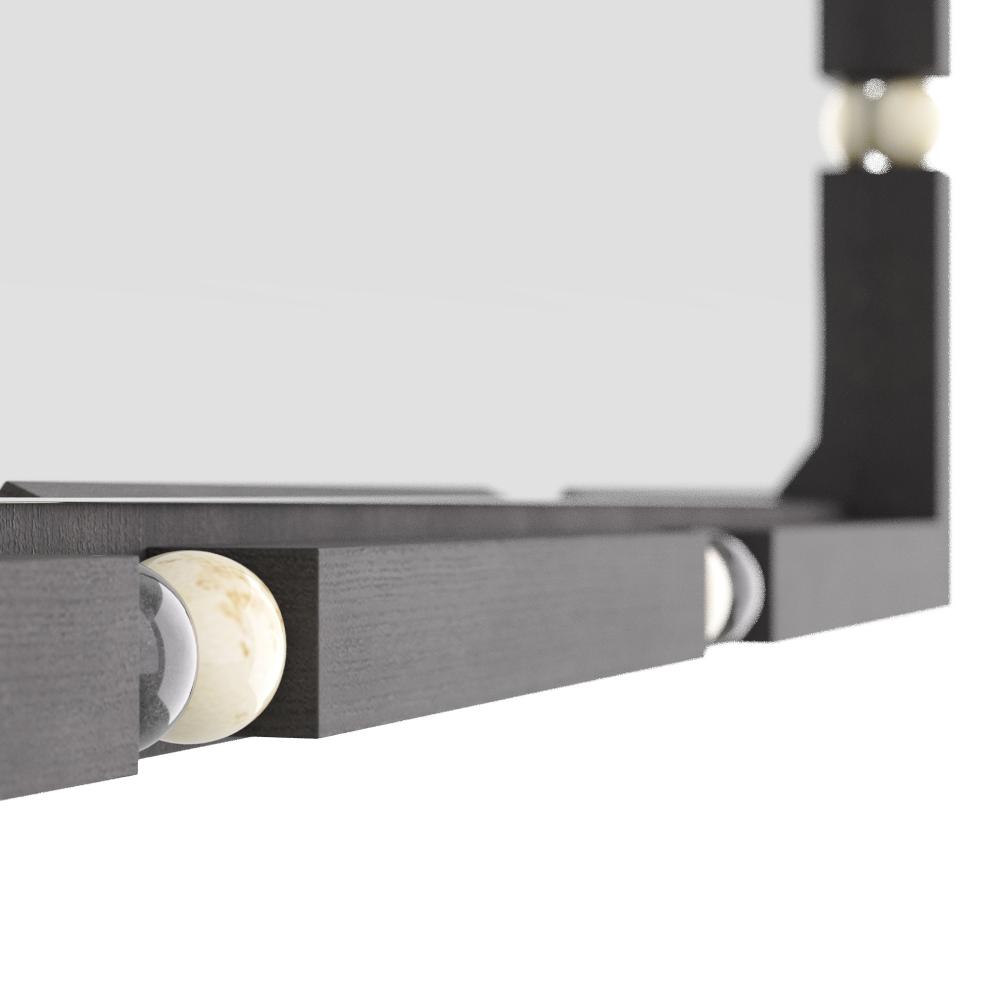 A rectangular frame of ebony finished mango wood is punctuated with marble balls in contrasting hues. These black and white details float about the perimeter, adding a geometric playfulness to the simple form. This versatile accent can be hung both vertically and horizontally. Fitted with security cleat hardware. Finish will vary.