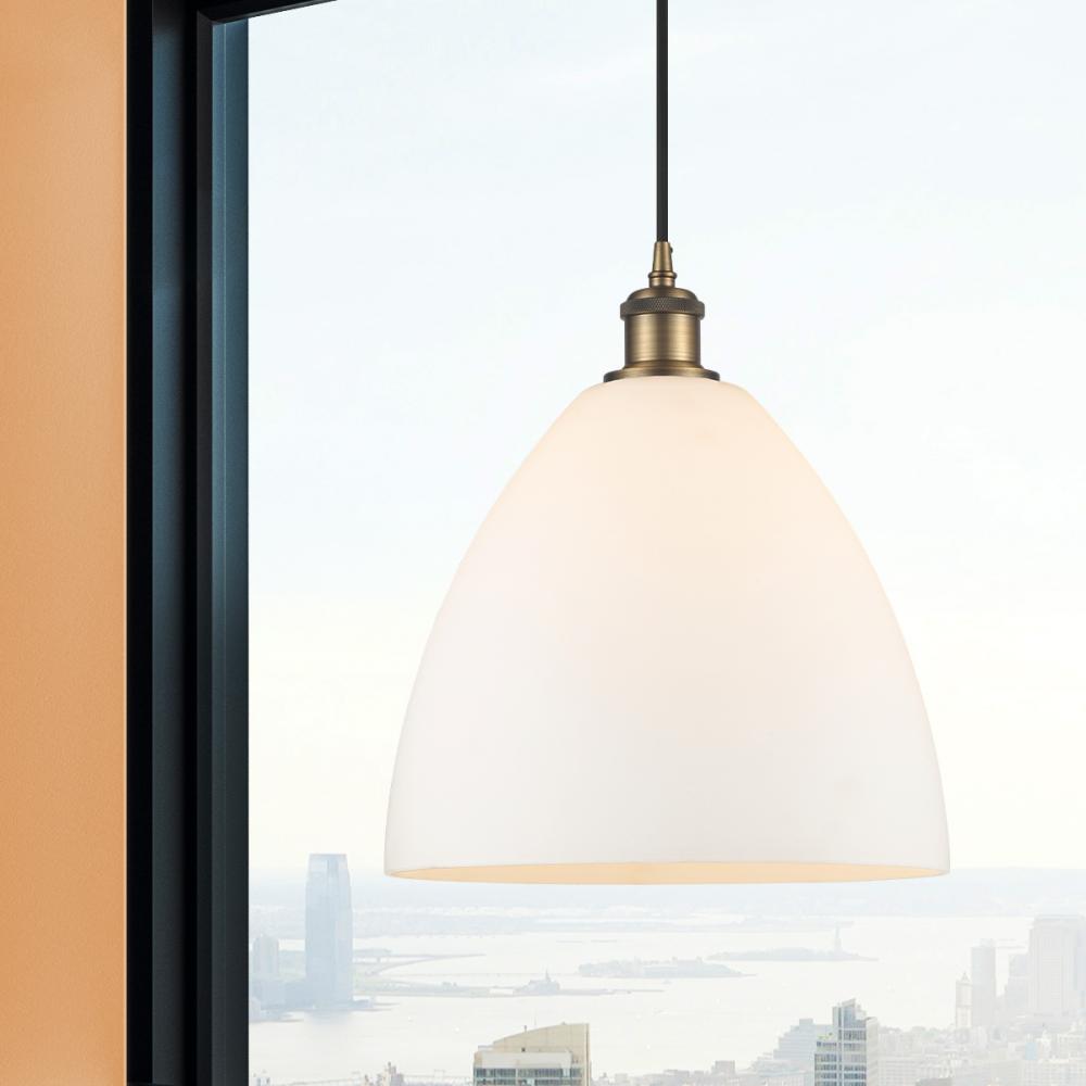 Bristol - 1 Light - 12 inch - Brushed Brass - Matte White Shade - Cord hung - Mini Pendant