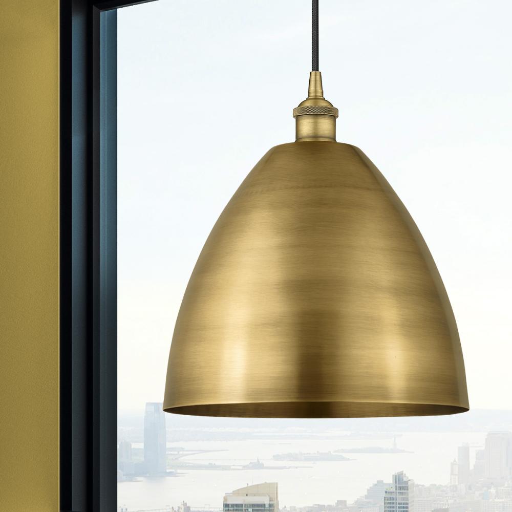 Bristol - 1 Light - 12 inch - Brushed Brass - Brushed Brass Shade - Cord hung - Mini Pendant