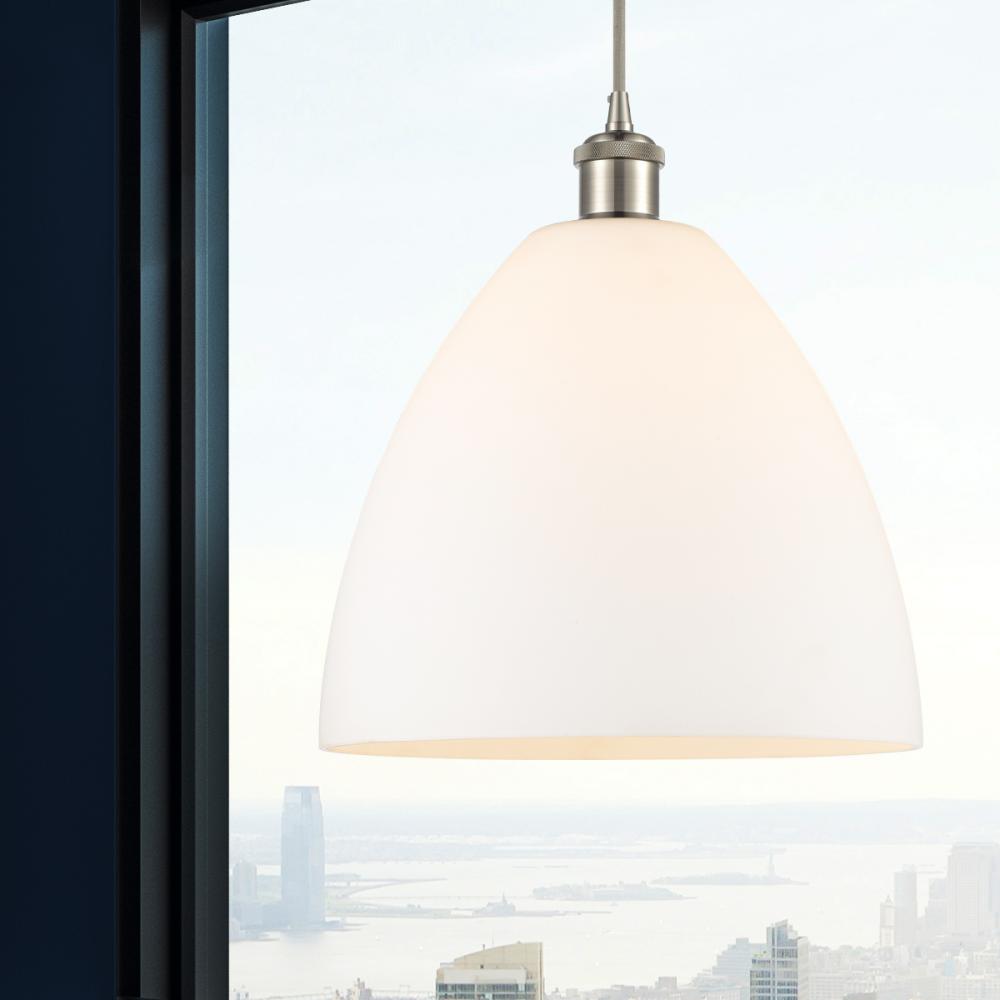 Bristol - 1 Light - 12 inch - Brushed Satin Nickel - Matte White Shade - Cord hung - Mini Pendant